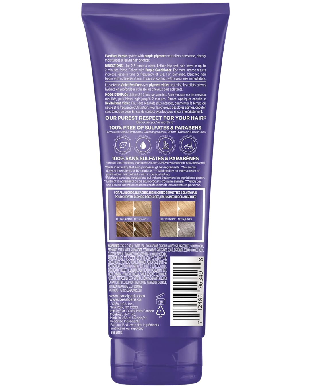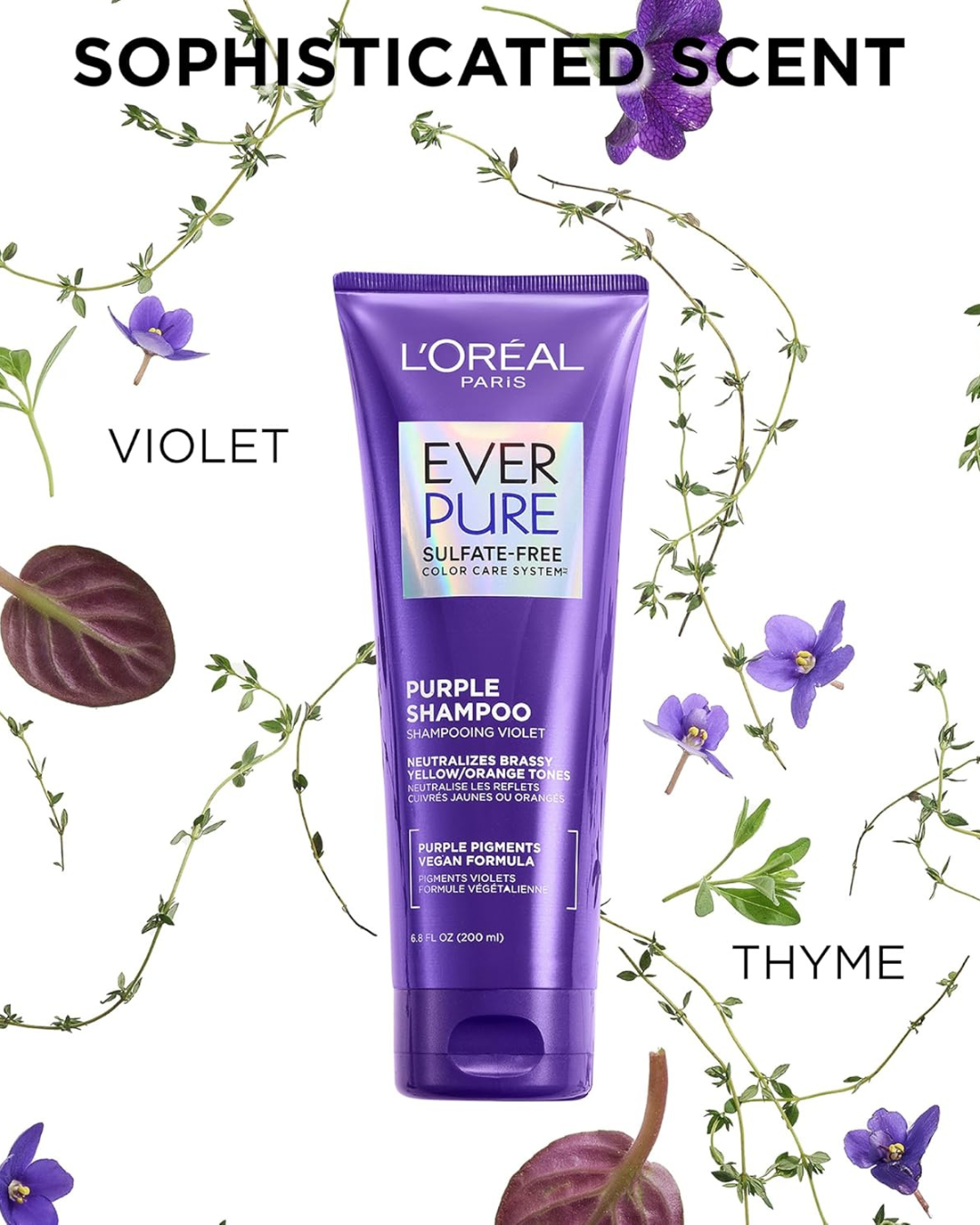 Sulfate-Free Purple Toning Shampoo: Maintain vibrant blonde tones with EverPure Sulfate-Free Purple Shampoo. Gently cleanses while neutralizing brassy yellow and orange tones in blonde, bleached, highlighted, and silver hair.