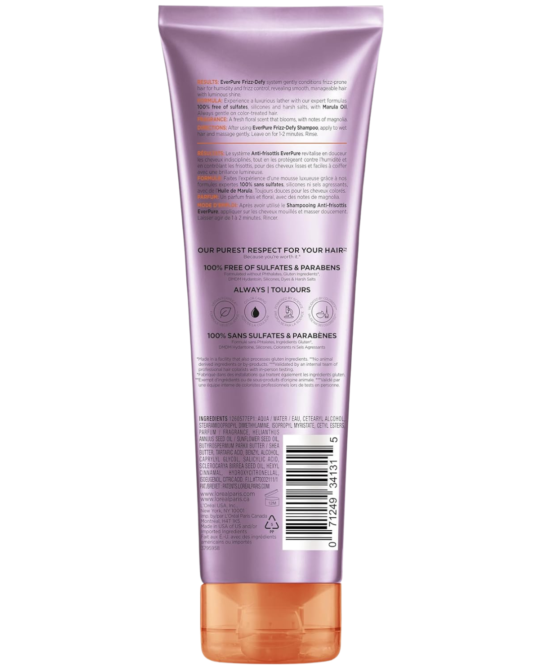 For Best Results: After cleansing with Shampoo, apply Frizz Defy Conditioner to wet hair. Leave on for 1–2 minutes, then rinse thoroughly. Follow with EverSleek Frizz Finish for enhanced smoothness.